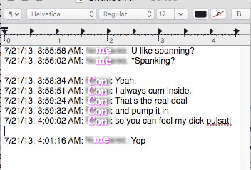 An actual screen grab of an exported Whatsapp SMS conversation dated 2013 July.